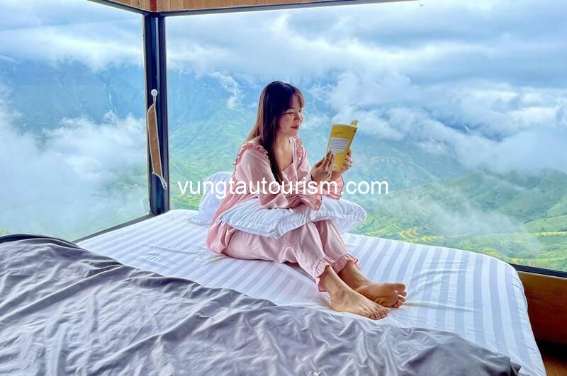 Bên cạnh những chiếc đệm êm ái, homestay còn có võng, bàn ghế trong nhà để bạn vừa chill vừa đọc sách hay nhâm nhi tách cà phê nóng hổi. Bốn bề không gian còn có cửa sổ để mở rộng tầm nhìn ra phía ngoài rất chill. Một phòng có sức chứa tối đa là 8 người nên nếu bạn đi theo nhóm thì vungtautourism.com khuyên bạn đừng bỏ qua homestay xinh xắn này nhé!